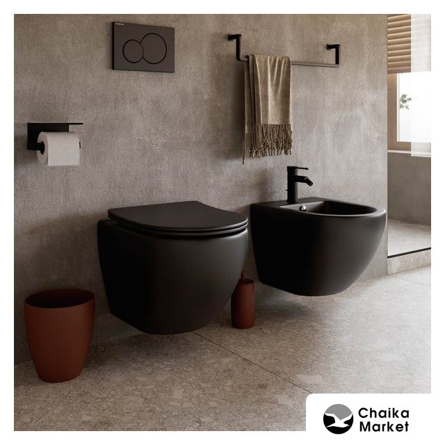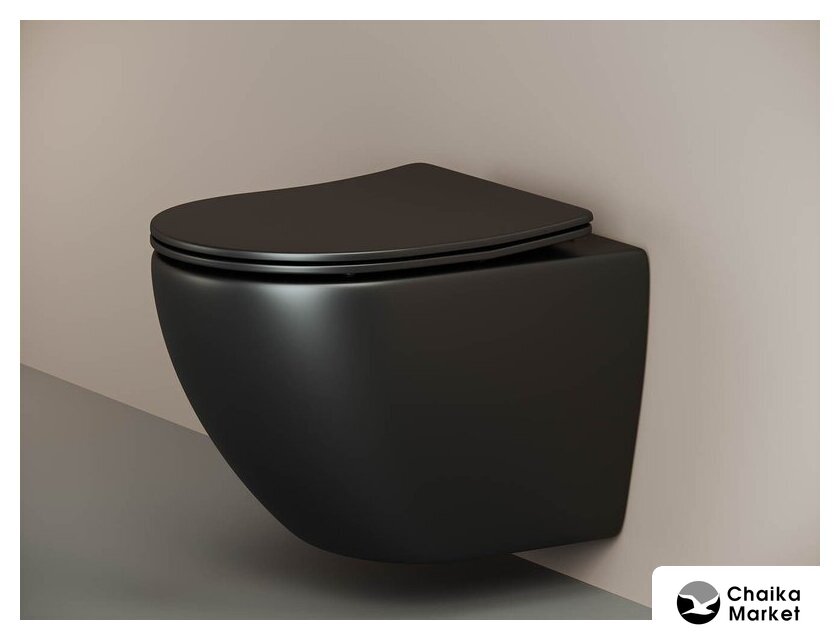 подвесной, конструкция: без бачка, задний подвод воды, горизонтальный выпуск, двухрежимный слив, с сиденьем, безободковый
