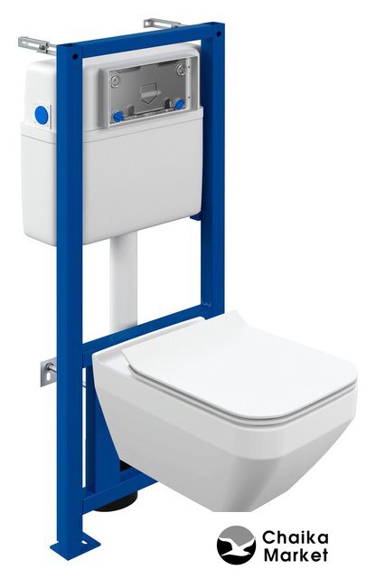 подвесной, конструкция: без бачка, задний подвод воды, горизонтальный выпуск, двухрежимный слив, с сиденьем, безободковый
