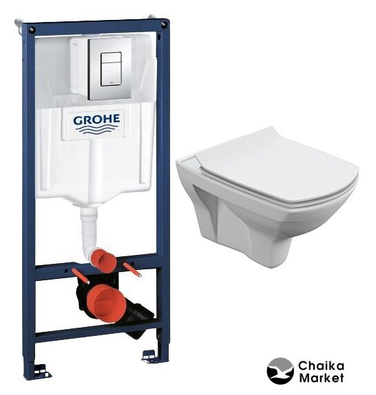 подвесной, конструкция: без бачка, задний подвод воды, горизонтальный выпуск, двухрежимный слив, с сиденьем, безободковый