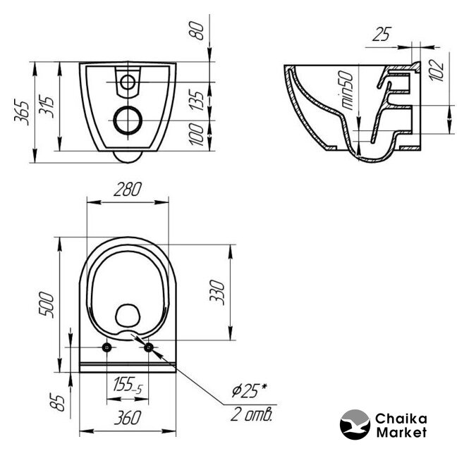 подвесной, задний подвод воды, горизонтальный выпуск, с сиденьем, безободковый