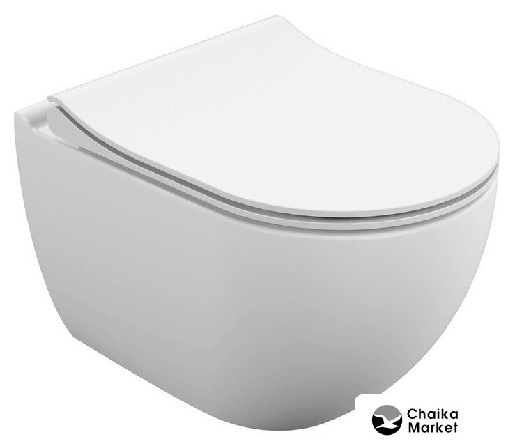 подвесной, конструкция: без бачка, задний подвод воды, горизонтальный выпуск, однорежимный слив, с сиденьем, безободковый