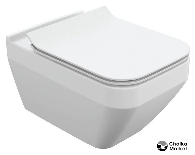 подвесной, конструкция: без бачка, задний подвод воды, горизонтальный выпуск, с сиденьем, безободковый