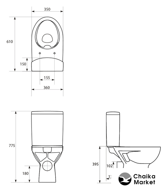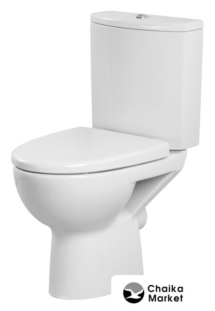 напольный, конструкция: компакт, горизонтальный выпуск, двухрежимный слив, с сиденьем, безободковый