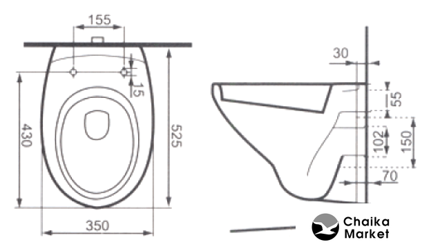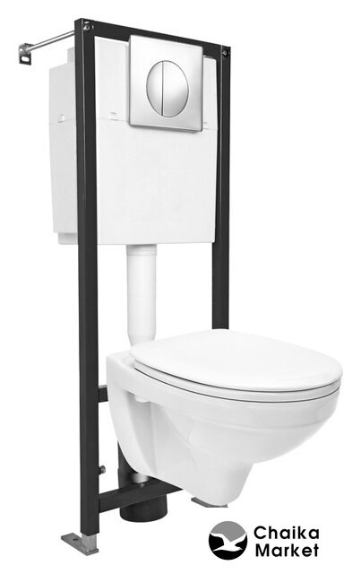 подвесной, конструкция: без бачка, задний подвод воды, горизонтальный выпуск, двухрежимный слив, с сиденьем, безободковый