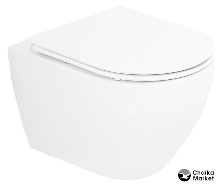подвесной, конструкция: без бачка, задний подвод воды, горизонтальный выпуск, с сиденьем, безободковый