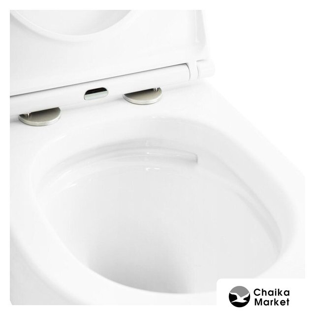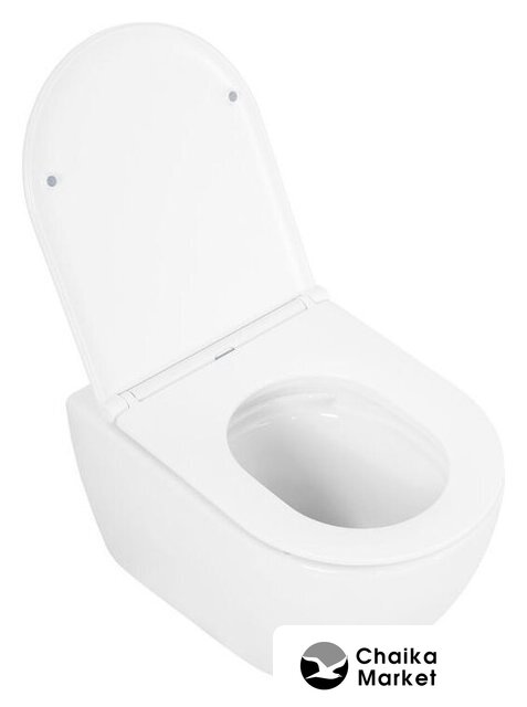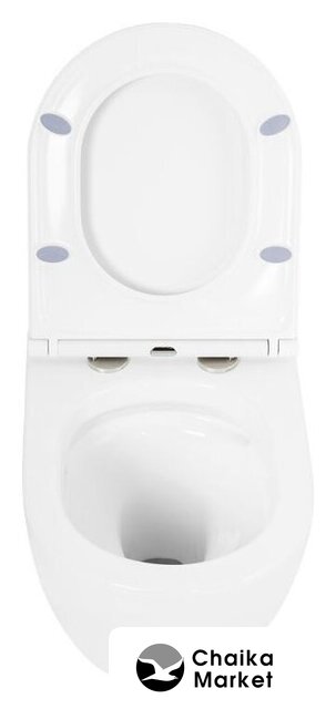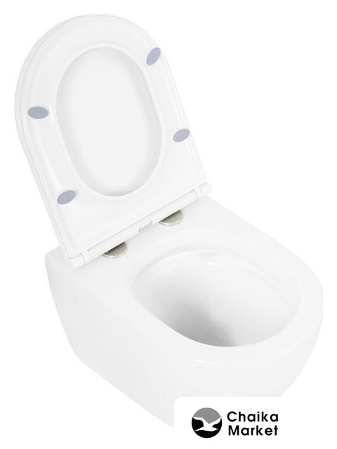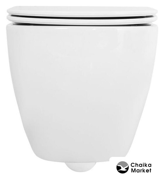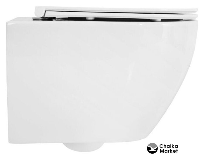 подвесной, конструкция: без бачка, нижний подвод воды, горизонтальный выпуск, с сиденьем, безободковый