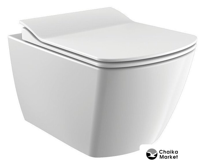 подвесной, конструкция: компакт, задний подвод воды, горизонтальный выпуск, однорежимный слив, с сиденьем, безободковый
