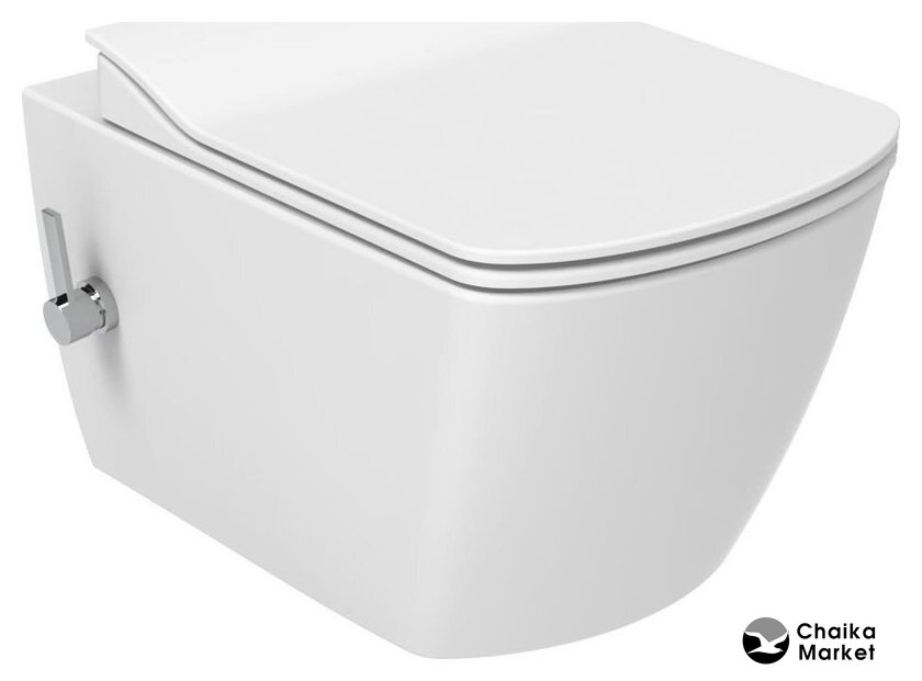 подвесной, конструкция: без бачка, задний подвод воды, горизонтальный выпуск, двухрежимный слив, с сиденьем, безободковый