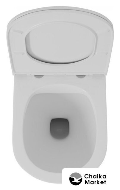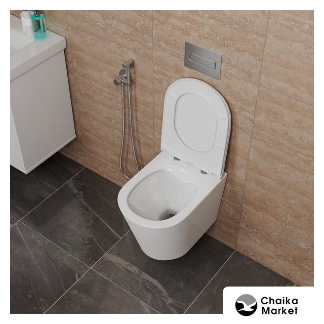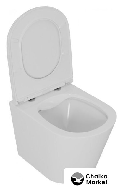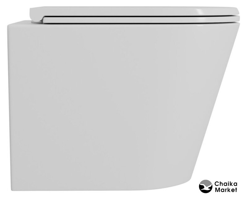 подвесной, конструкция: без бачка, задний подвод воды, горизонтальный выпуск, двухрежимный слив, с сиденьем, безободковый
