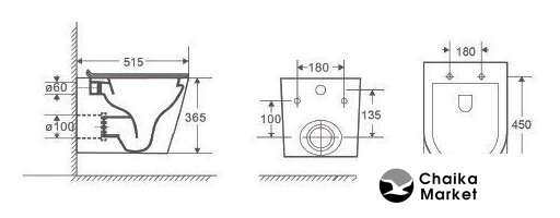 подвесной, без бачка, задний подвод воды, горизонтальный выпуск