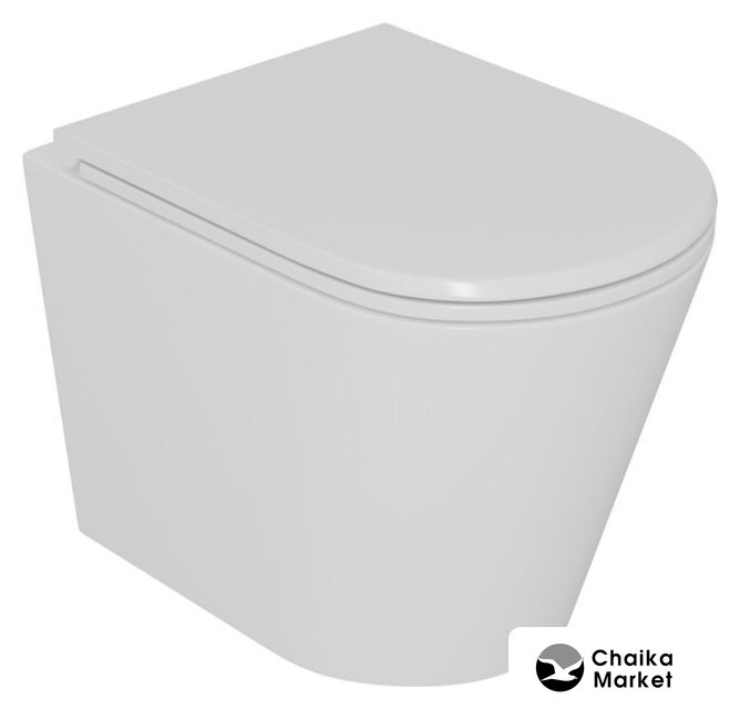 подвесной, конструкция: без бачка, задний подвод воды, горизонтальный выпуск, с сиденьем, безободковый