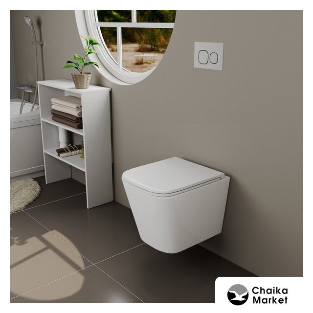 подвесной, без бачка, задний подвод воды, горизонтальный выпуск, с сиденьем