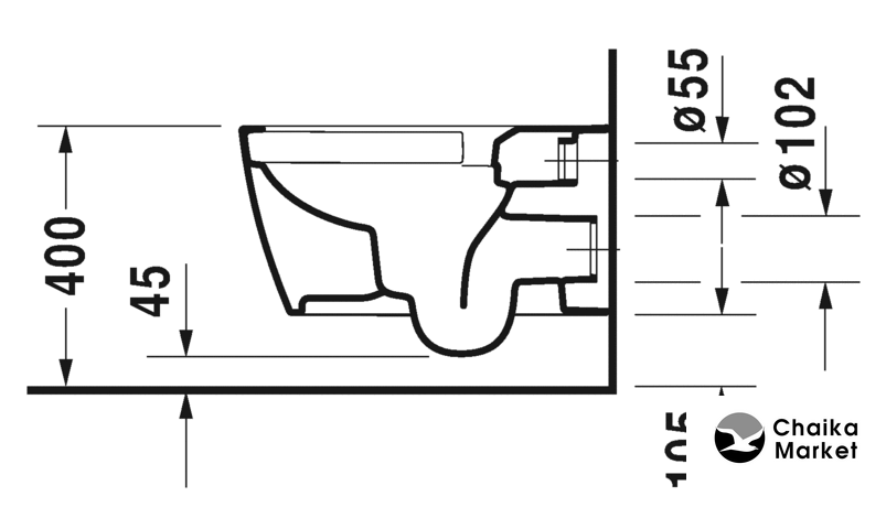 подвесной, конструкция: без бачка, задний подвод воды, горизонтальный выпуск, однорежимный слив, с сиденьем
