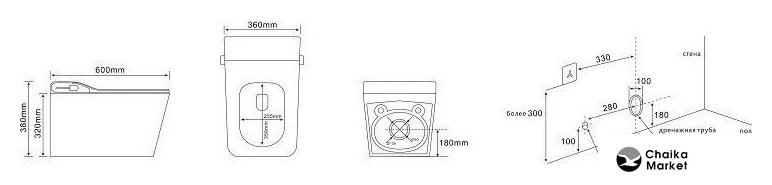 подвесной, конструкция: без бачка, задний подвод воды, горизонтальный выпуск, с сиденьем