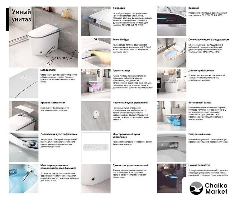 Дополнительные функции | подогрев сиденья, регулировка температуры воды, дезодорация |