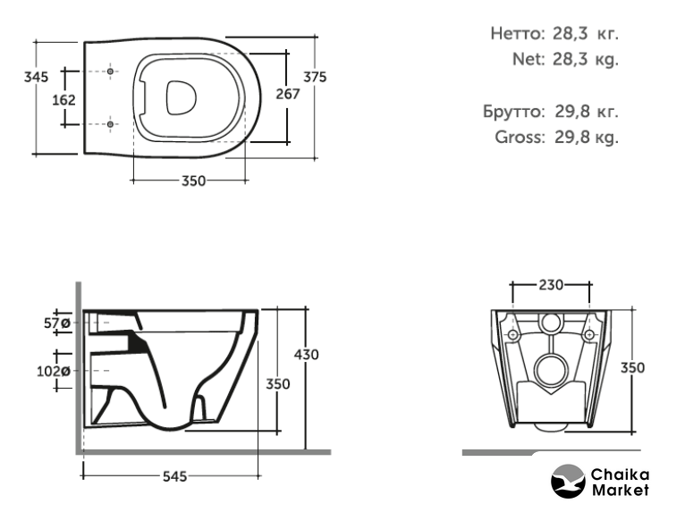подвесной, конструкция: без бачка, задний подвод воды, горизонтальный выпуск, однорежимный слив, с сиденьем, безободковый