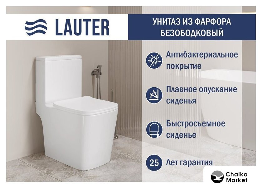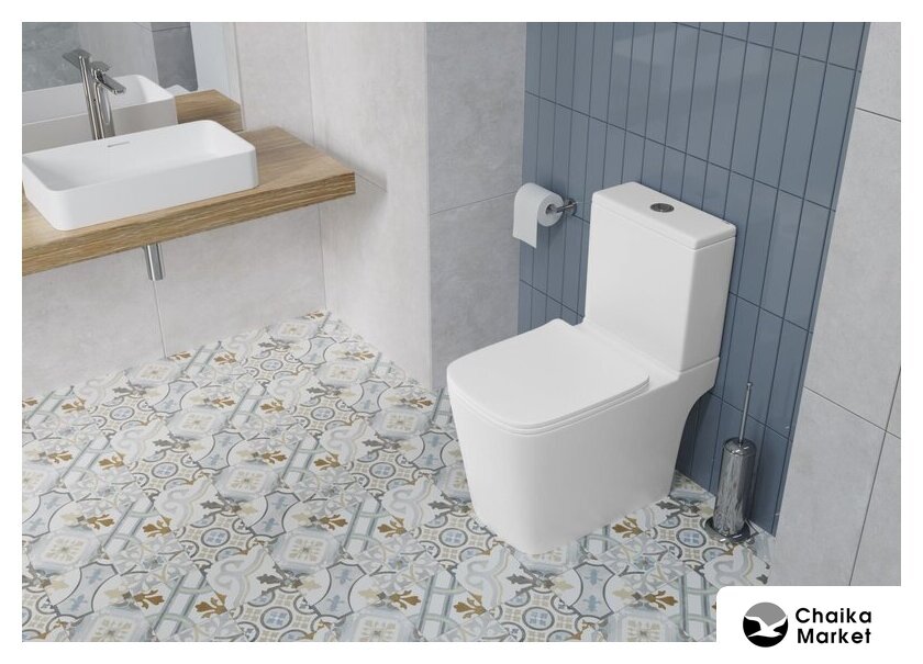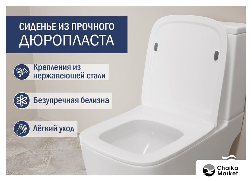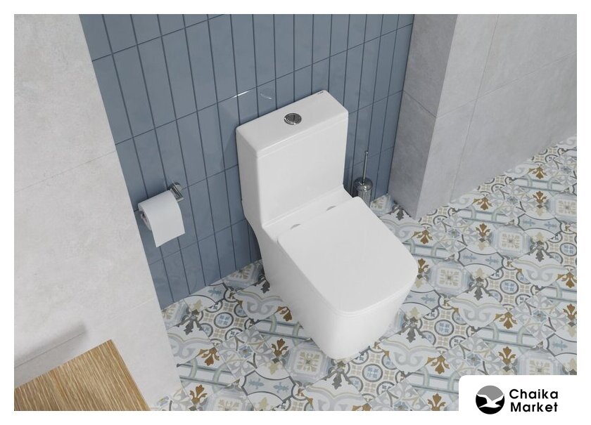 напольный, конструкция: компакт, нижний подвод воды, универсальный выпуск, двухрежимный слив, с сиденьем, безободковый