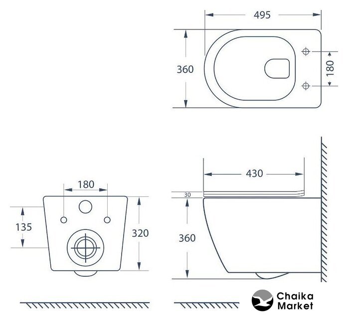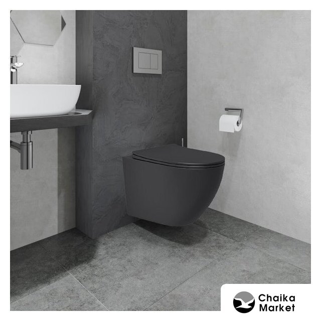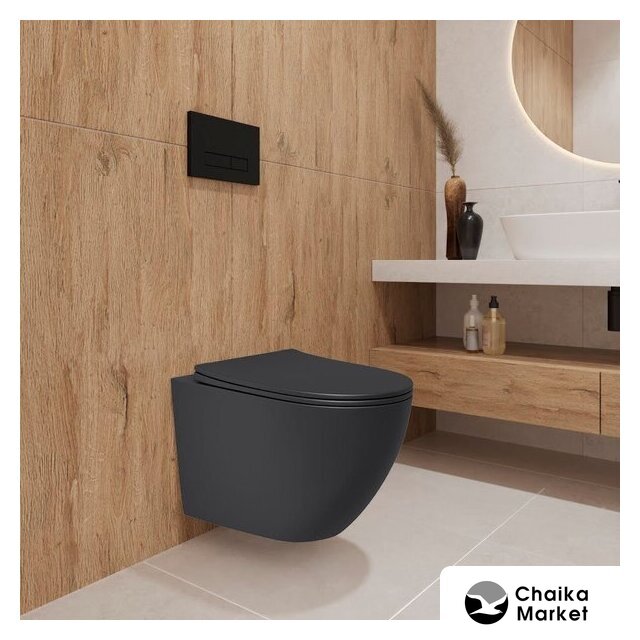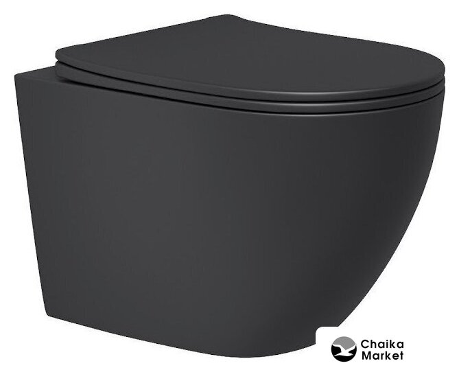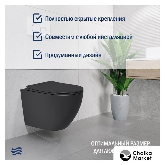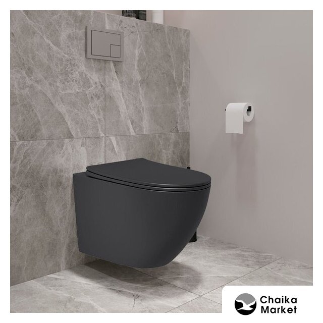 подвесной, конструкция: без бачка, задний подвод воды, горизонтальный выпуск, двухрежимный слив, с сиденьем, безободковый