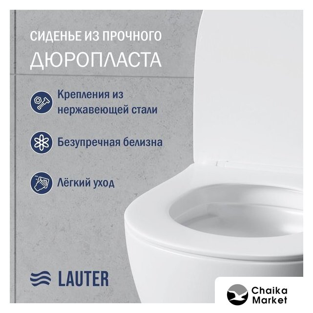 подвесной, конструкция: без бачка, задний подвод воды, горизонтальный выпуск, с сиденьем