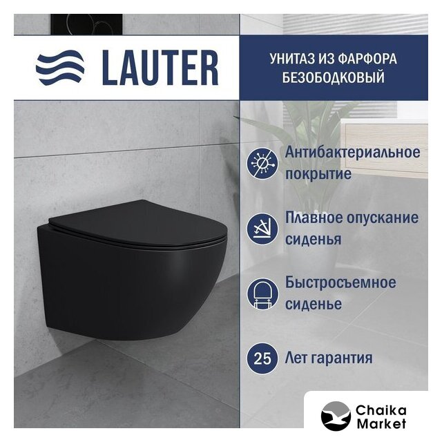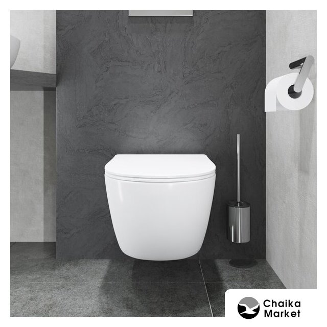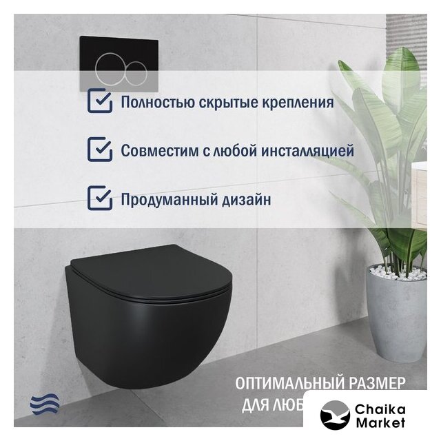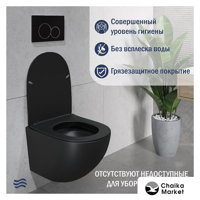 подвесной, конструкция: компакт, задний подвод воды, горизонтальный выпуск, двухрежимный слив, с сиденьем, безободковый