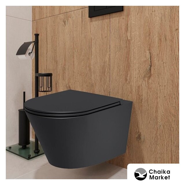 подвесной, конструкция: без бачка, задний подвод воды, горизонтальный выпуск, однорежимный слив, с сиденьем, безободковый