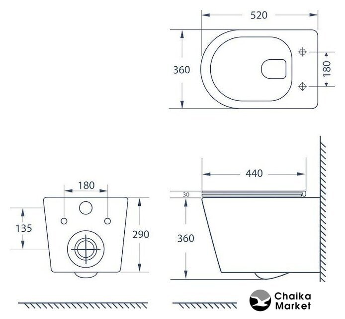 подвесной, без бачка, горизонтальный выпуск, с сиденьем