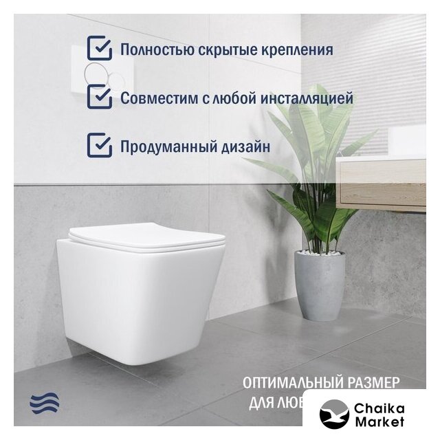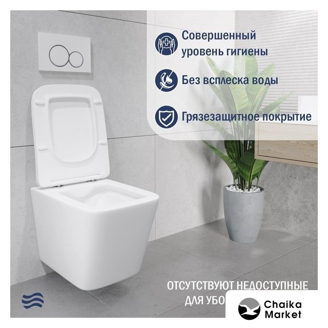 Унитаз подвесной Lauter Square 214903 с кнопкой 219703F (квадратная, сатин) — Chaika Market