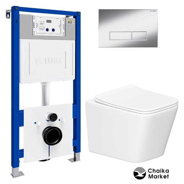 Унитазы Lauter Lauter Square 214903 с кнопкой 219701HD (узкая, хром) Код товара: 11055004