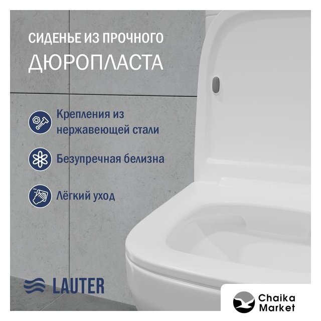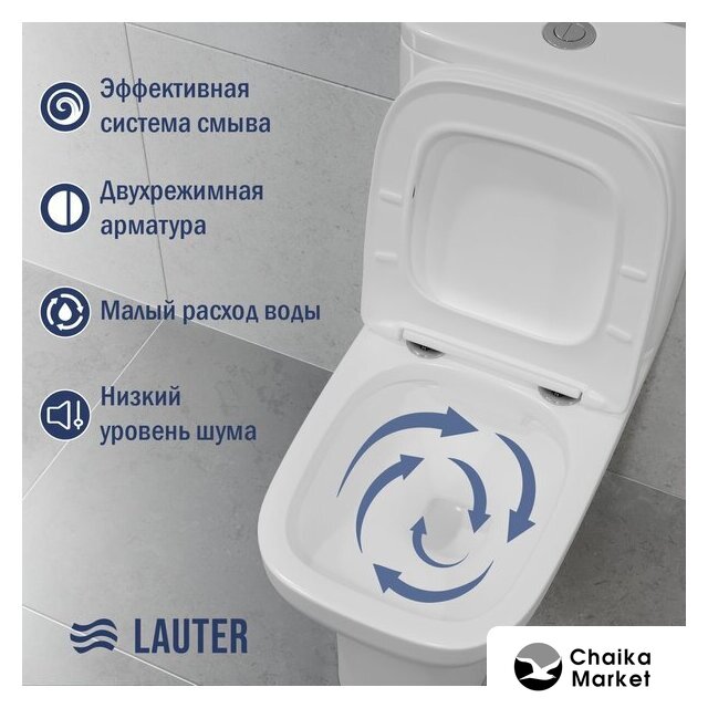 напольный, конструкция: компакт, нижний подвод воды, горизонтальный выпуск, двухрежимный слив, с сиденьем