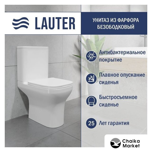 напольный, конструкция: компакт, нижний подвод воды, универсальный выпуск