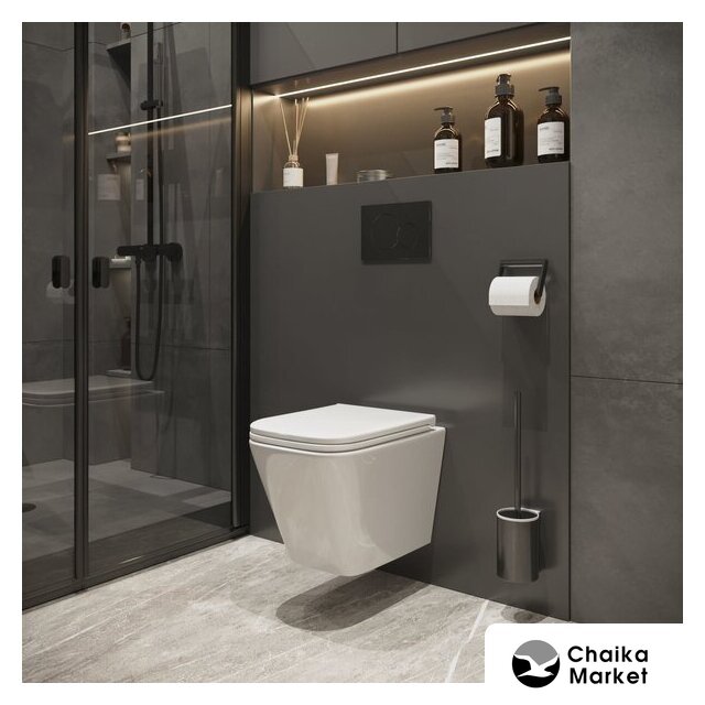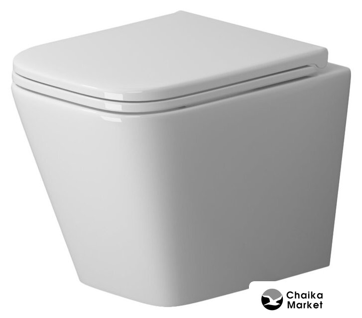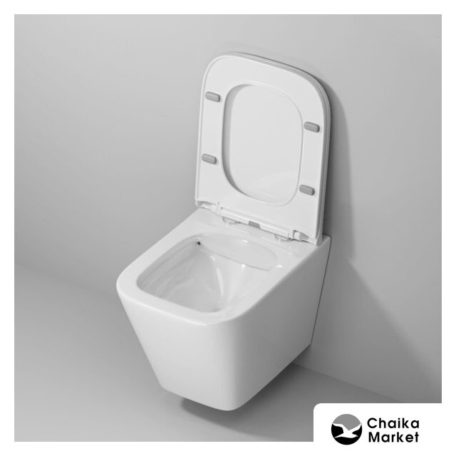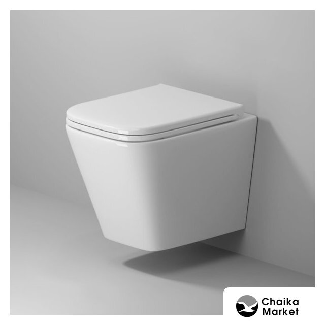 подвесной, конструкция: без бачка, задний подвод воды, горизонтальный выпуск, однорежимный слив, с сиденьем, безободковый