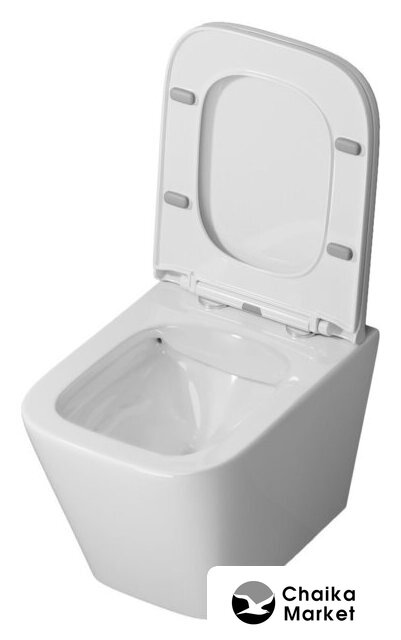 подвесной, конструкция: без бачка, задний подвод воды, горизонтальный выпуск, с сиденьем, безободковый