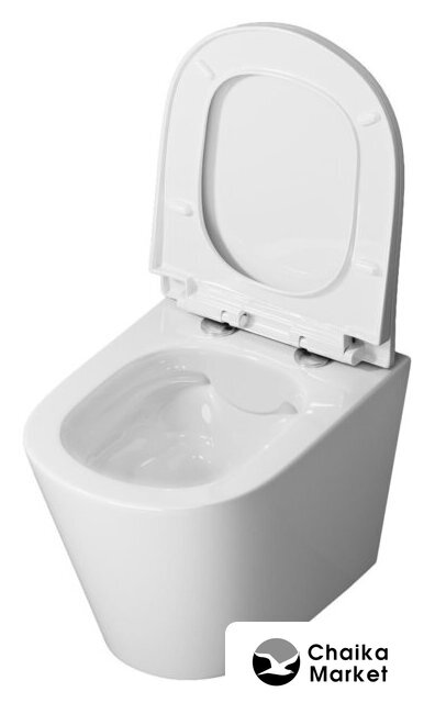подвесной, конструкция: без бачка, задний подвод воды, горизонтальный выпуск, с сиденьем, безободковый