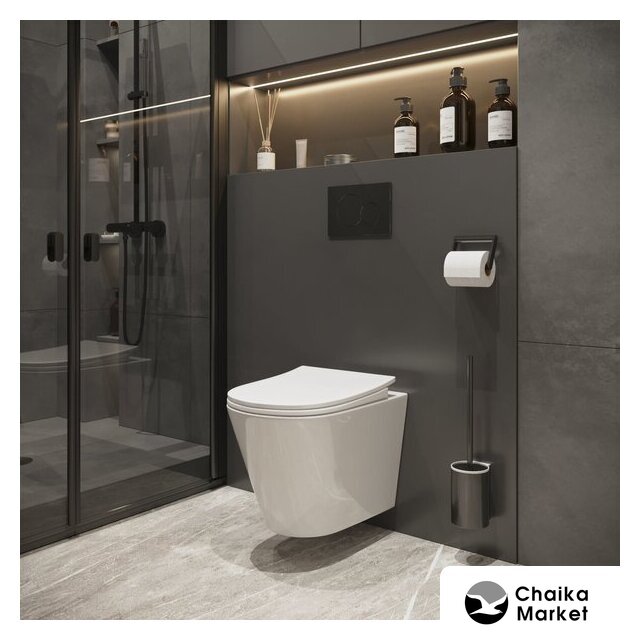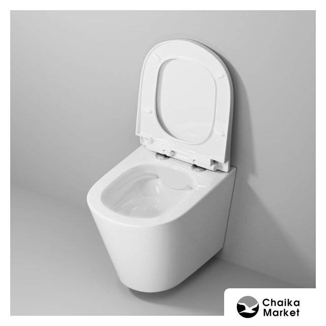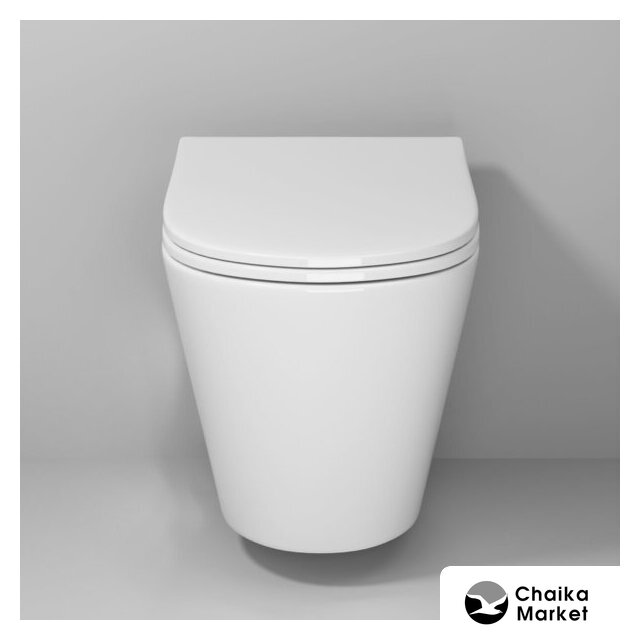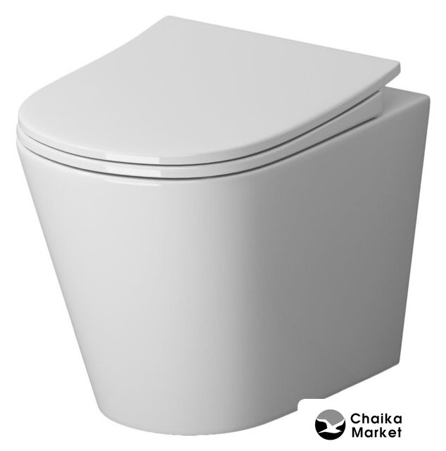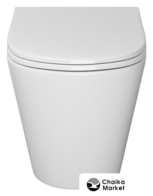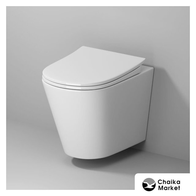 подвесной, конструкция: без бачка, задний подвод воды, горизонтальный выпуск, однорежимный слив, с сиденьем, безободковый