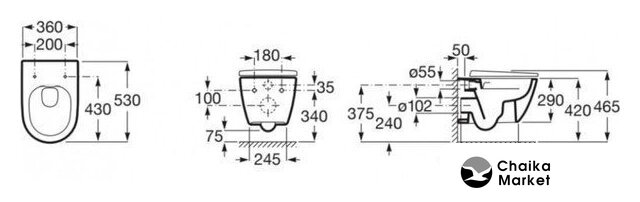 подвесной, без бачка, задний подвод воды, горизонтальный выпуск