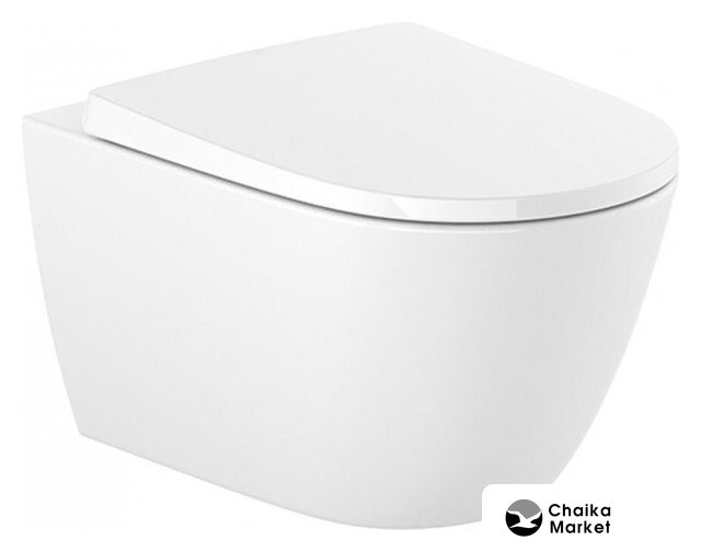 подвесной, конструкция: без бачка, задний подвод воды, горизонтальный выпуск, с сиденьем, безободковый