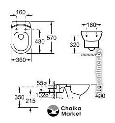подвесной, задний подвод воды, горизонтальный выпуск, безободковый
