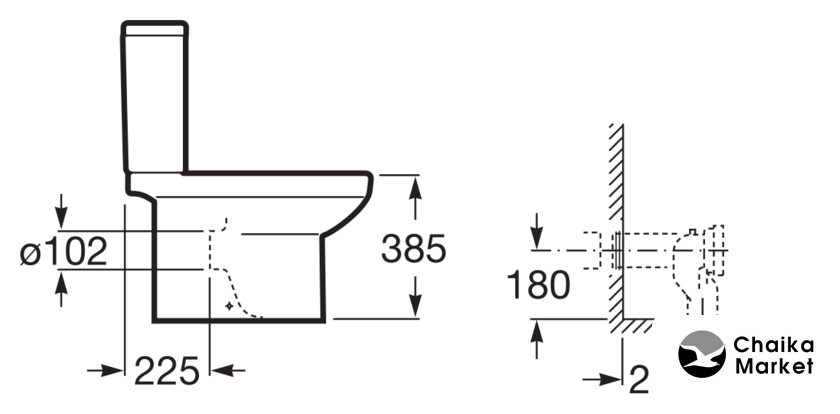 напольный, конструкция: компакт, задний подвод воды, универсальный выпуск, двухрежимный слив, безободковый