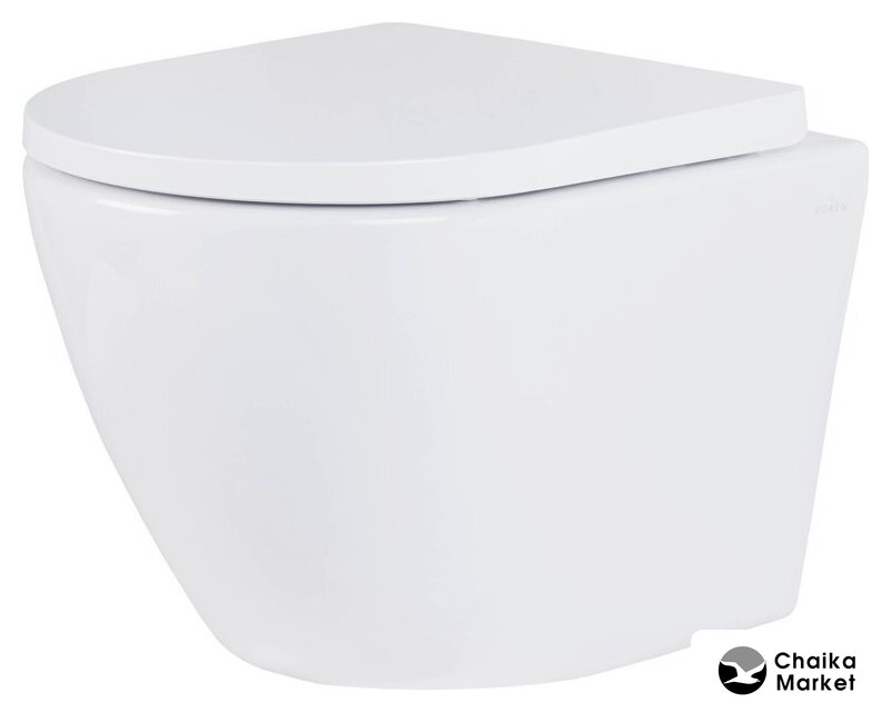 подвесной, конструкция: без бачка, задний подвод воды, горизонтальный выпуск, двухрежимный слив, с сиденьем, безободковый