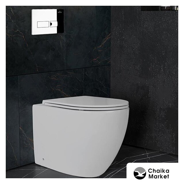 подвесной, конструкция: без бачка, задний подвод воды, горизонтальный выпуск, двухрежимный слив, с сиденьем, безободковый