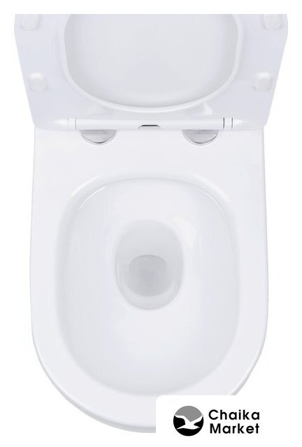 подвесной, конструкция: без бачка, задний подвод воды, горизонтальный выпуск, двухрежимный слив, с сиденьем, безободковый