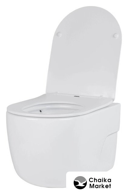 подвесной, конструкция: без бачка, задний подвод воды, горизонтальный выпуск, двухрежимный слив, с сиденьем, безободковый