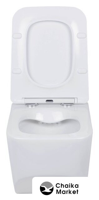 подвесной, конструкция: без бачка, задний подвод воды, горизонтальный выпуск, двухрежимный слив, с сиденьем, безободковый