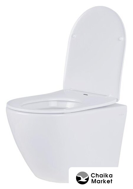 подвесной, конструкция: без бачка, задний подвод воды, горизонтальный выпуск, двухрежимный слив, с сиденьем, безободковый