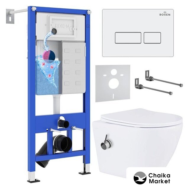 Унитазы Roxen Roxen Antares Bidet в комплекте с инсталляцией StounFix Dual Fresh 6 в 1 953833 (кнопка: белый глянец) Код товара: 9341631