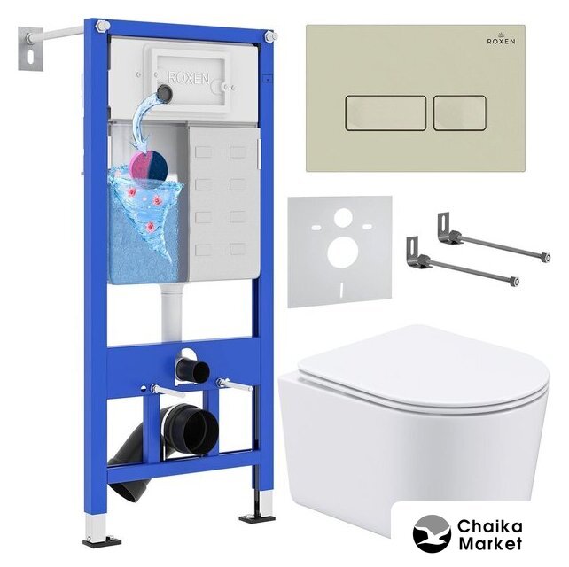 Унитаз подвесной Roxen Boro в комплекте с инсталляцией StounFix Dual Fresh 6 в 1 966244 (кнопка: бежевый) — Chaika Market