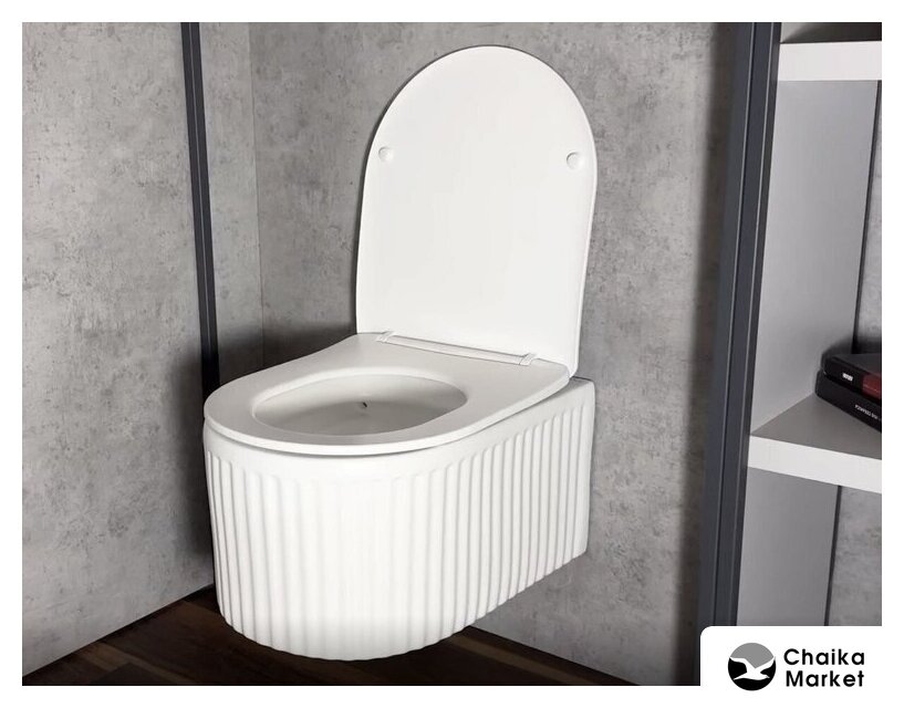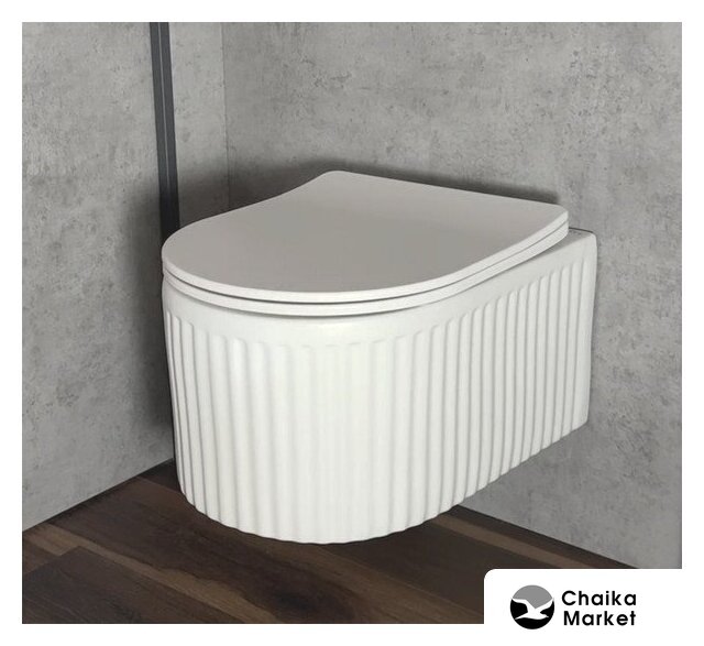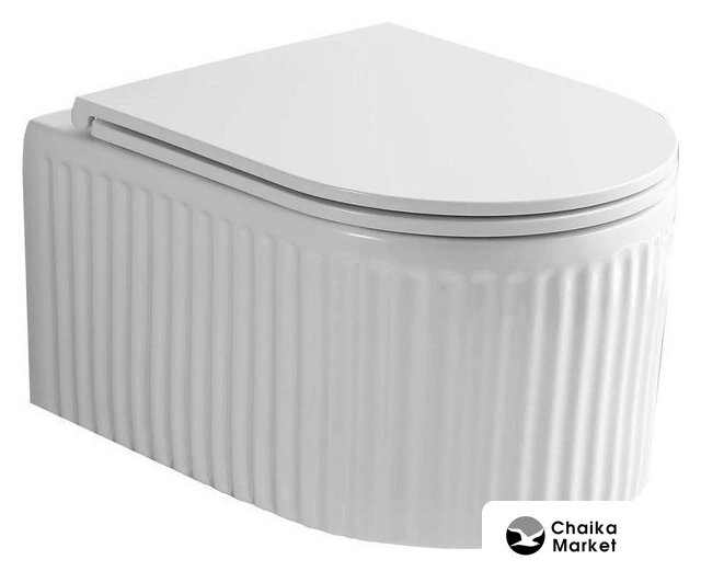 подвесной, конструкция: без бачка, задний подвод воды, горизонтальный выпуск, с сиденьем, безободковый
