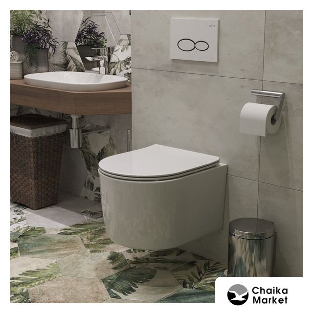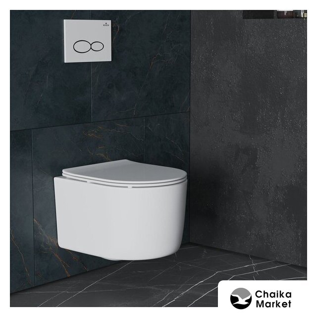 подвесной, конструкция: без бачка, задний подвод воды, горизонтальный выпуск, однорежимный слив, безободковый