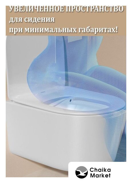подвесной, конструкция: без бачка, горизонтальный выпуск, с сиденьем, безободковый