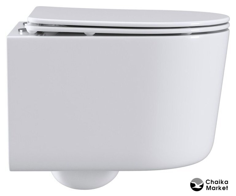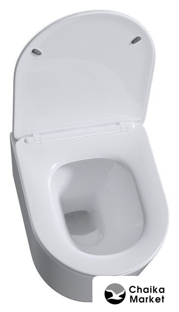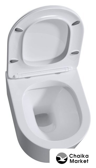 подвесной, конструкция: без бачка, задний подвод воды, горизонтальный выпуск, с сиденьем, безободковый